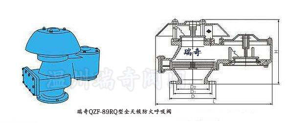 QZF-89RQ瑞奇全天候防火呼吸閥主要是用來滿足儲罐大小呼吸的通氣與阻火要求安裝在儲存甲、乙、丙類液體的儲罐頂上,確保儲罐在超壓時免遭破壞,同時減小儲罐內(nèi)介質(zhì)的蒸發(fā)損耗。是集阻火器與呼吸閥為一體。它是石化儲罐必備安全設(shè)備,其最大優(yōu)點是阻火呼吸性能好、重量輕、密封性能好、泄漏量小、耐腐蝕維修方便。