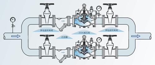 給水及其他工業給水系統,通過調節減壓導閥,即可調節主閥的出口壓力。出口壓力不因進口壓力、進口流量的
